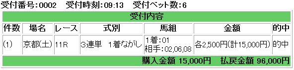でも・・・やっぱり本当に凄いレースでした。素晴らしいレースを見る事ができて本当に幸せだと思います。馬券の的中を超えて脱帽させられたレースです。