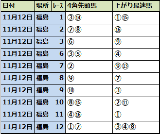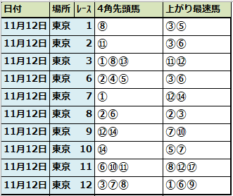 1-3【4角先頭馬・上がり最速馬】2023/11/12(日)