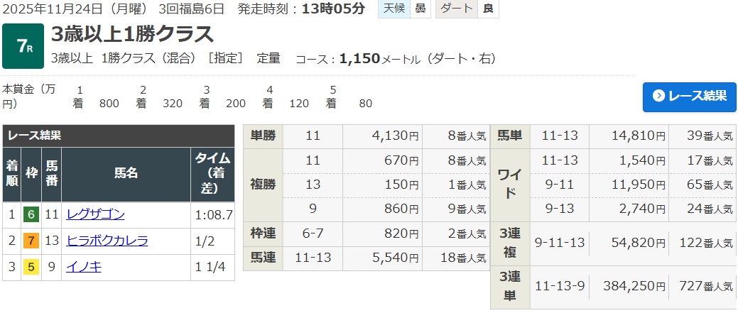 ★2025東京・福島競馬 11月第4週(月曜日)★
