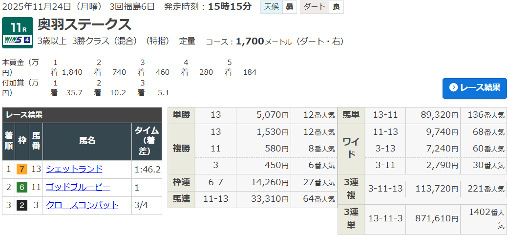 1【今日の中央競馬予想(東京・福島)】2025/11/24(月)