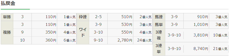 2018年以前は前走との間隔が中6週以上だった馬もそれなりに好走していたものの、近年の傾向を重視するならば休養明けで臨む馬は評価を下げるべきかもしれない。